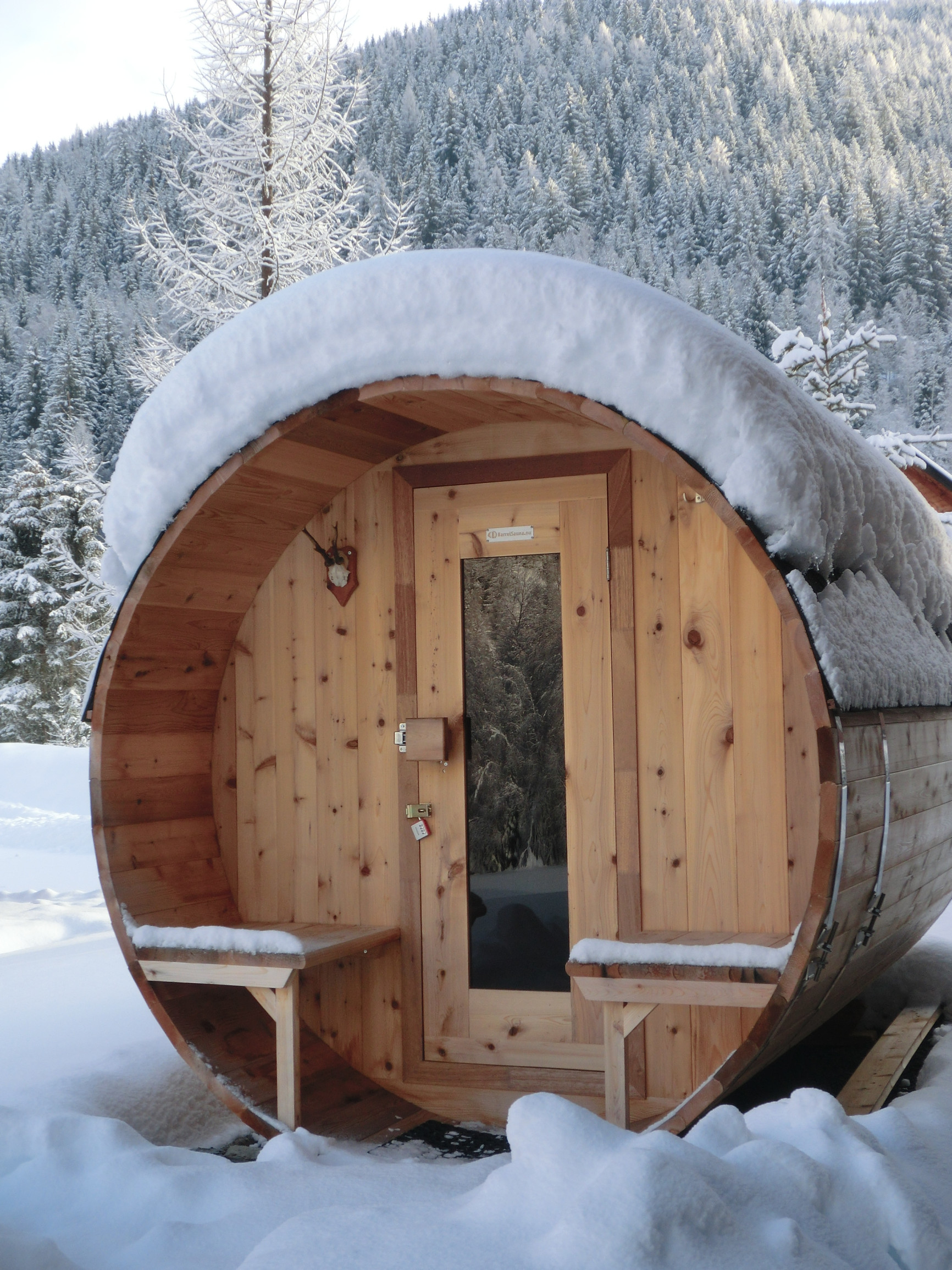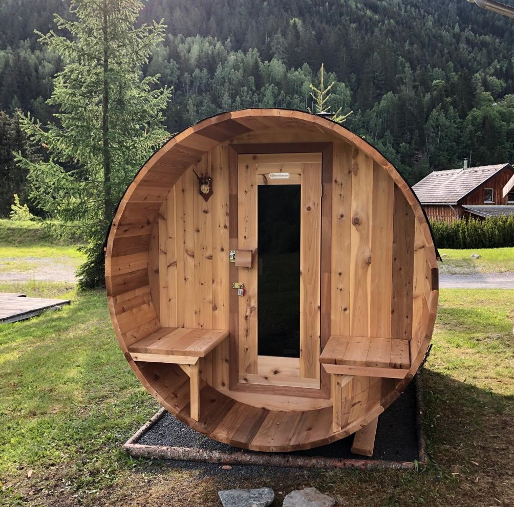 - Barrel sauna: wood fired