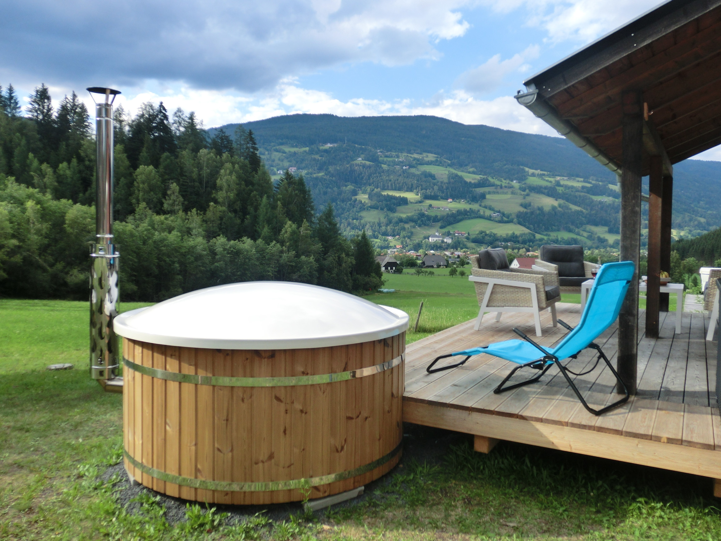 Welcome to this idyllically located chalet on a sunny south-facing slope. The chalet is located in Stadl an der Mur, a small village on the border between Styria, Carinthia and the Salzburger Land. It is surrounded by the Niedere Tauern mountain range and the Gurktaler Alps. The holiday home can accommodate six people, is tastefully furnished and is located on a holiday park with 40 chalets. Your chalet is built with high-quality materials with a cozy wooden interior. The comfortable furnishings offer two bathrooms, each with a toilet, one with a shower and one with a bathtub. The kitchen is equipped with a dishwasher, hob, large fridge freezer and microwave. In the storage room there is room for your skis and you can dry and heat your ski boots. In 2020 the chalet is expanded with a hot tub and a barrel sauna, in short everything for a relaxing holiday.